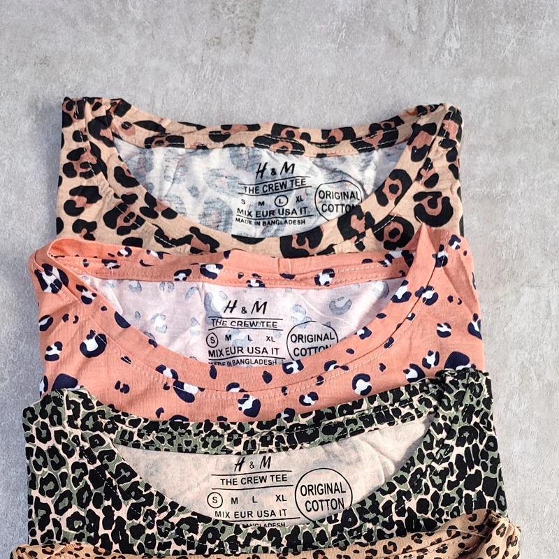 🐆کراپ پلنگی برند H&M🐆 ✨وارداتی ؛ بنگلادشی جنس نخ پنبه کتان😍 📏سایزبندی : رنگ گلبهی سایز S دورسینه 98 قد 37 💰قیمت: 159/000 تومان