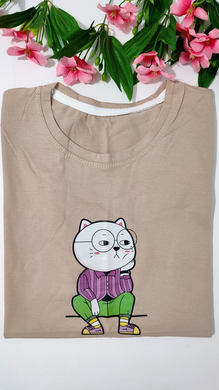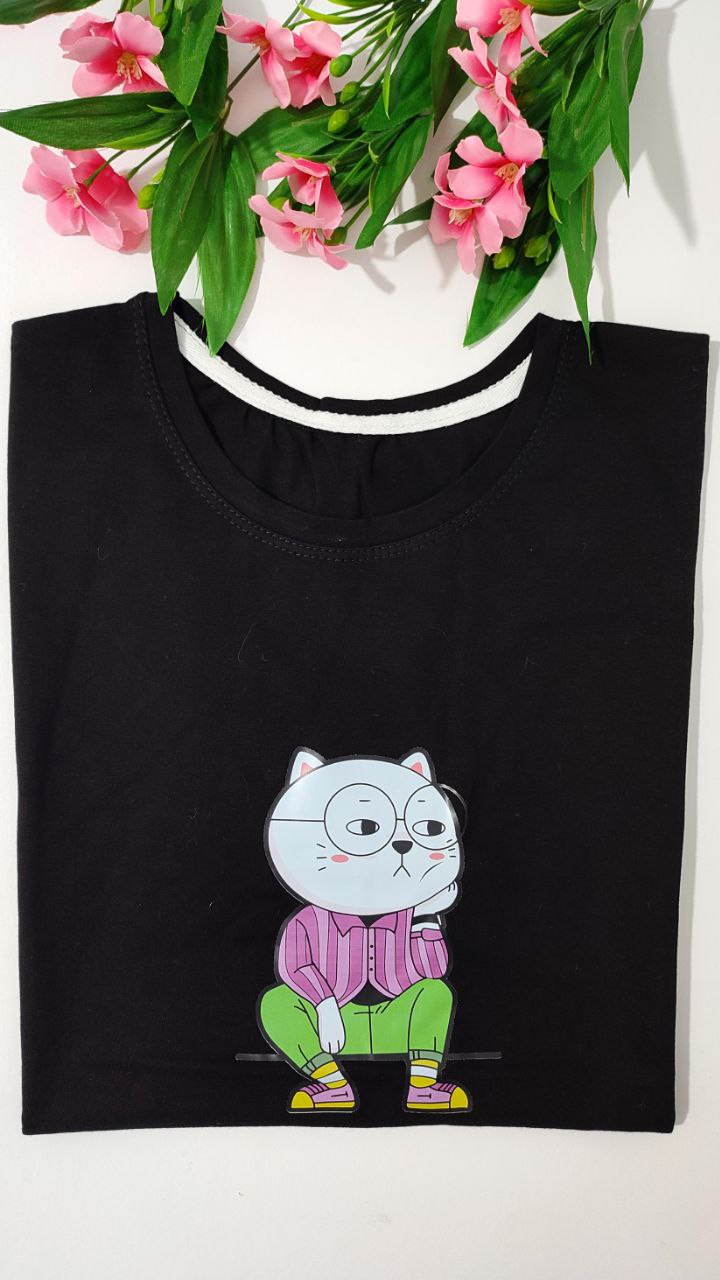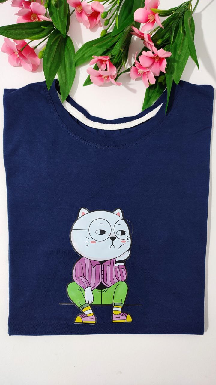 تیشرت دخترانه جنس نخ پنبه مدل گربه